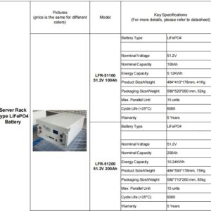 แบตเตอรี่ลิเที่ยมโซล่า LFP Rack 51.2V100Ah