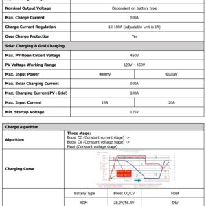 สูงสุด กระแสไฟฟ้าชาร์จพลังงานแสงอาทิตย์: 100A