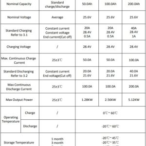 กำลังการผลิตสูงสุด ที่ 25±3℃ :5.12KW สำหรับความจุ 200.0Ah